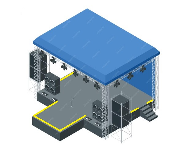 También para escenarios en altura generando la demarcación «final de escenario» minimizando accidentes y además manteniendo el cableado ordenado y protegido , por ejemplo de iluminación de piso , microfonos y monitores de audio .
